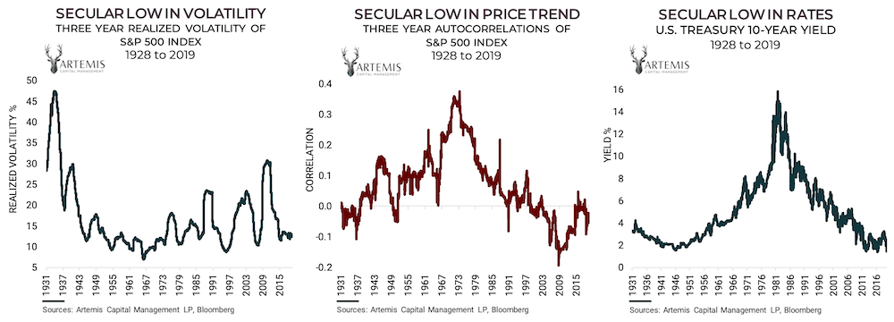 From the diagrams above, you can tell that we’re at an all-time low in 1. Volatility, 2. Asset Price Trending, and 3. Interest Rates for the recent decade. Therefore, many modern investment strategies generate yield based on the assumption that these core economic indexes won’t move away significantly. So applying the same strategies over 90 years would be extremely risky as the model has not been tested nor been hedged against the economic shifting.