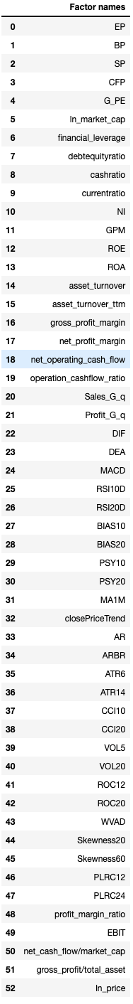 Below are the data and factors that I used to train the model. You can reference here to know what these factors stand for.
