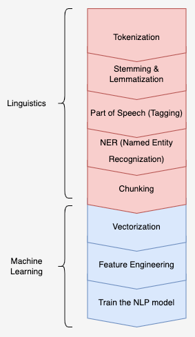 As said, the goal is to process our language into the binaries that computers can understand. This is the so-called vectorizing ofgiven text. Once the text has been vectorized into a series of numbers, the serialized numbers can be treated as features and fed to the machine-learning model. Then, the following are the things that we get used to, such as feature engineering, model training, and result predicting. Before vectorizing the text, there are several steps to go through as the image demonstrated below: